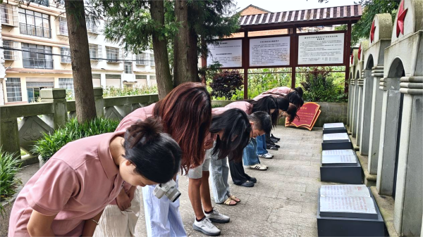 在抗日战争胜利80周年纪念日即将到来之际,beat365官方网站“心‘星’相连,共筑新篇”乡村振兴促进团在杨乔文老师的带领下,于7月8日前往恒合土家族乡石桥梁烈士陵园开展红色教育活动。团队成员通过默哀仪式、学习革命事迹和庄严宣誓等形式,缅怀革命先烈,并将红色基因转化为奋进新时代的动力。