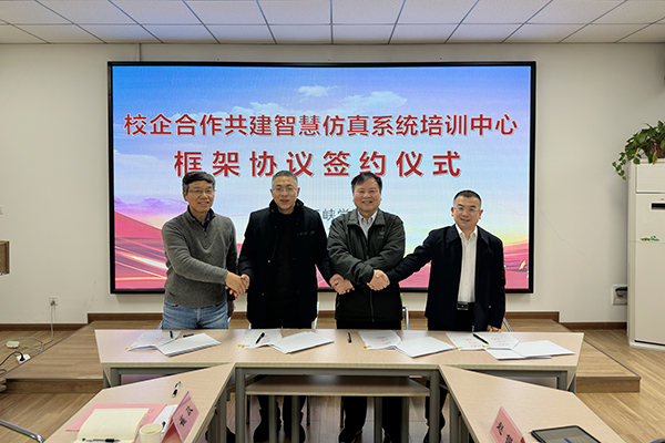 校企合作共建智慧仿真系统培训中心框架协议签约仪式现场。