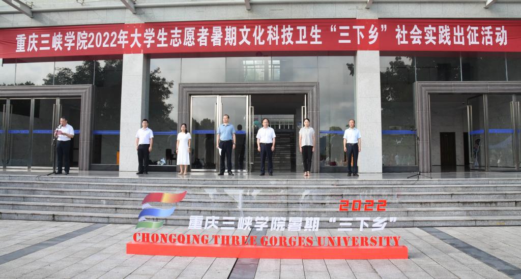 学校党委书记李廷勇宣布:2022年重庆市大学生志愿者暑期文化科技卫生“三下乡”社会实践,出征!踌躇满志的三峡学院师生即将投入到火热的社会实践活动中去,在观察、调研和体验中了解国情、社情、民情,形成正确认识,坚定理想信念,站稳人民立场,投身强国伟业,以实际行动和优异成绩迎接党的二十大胜利召开。