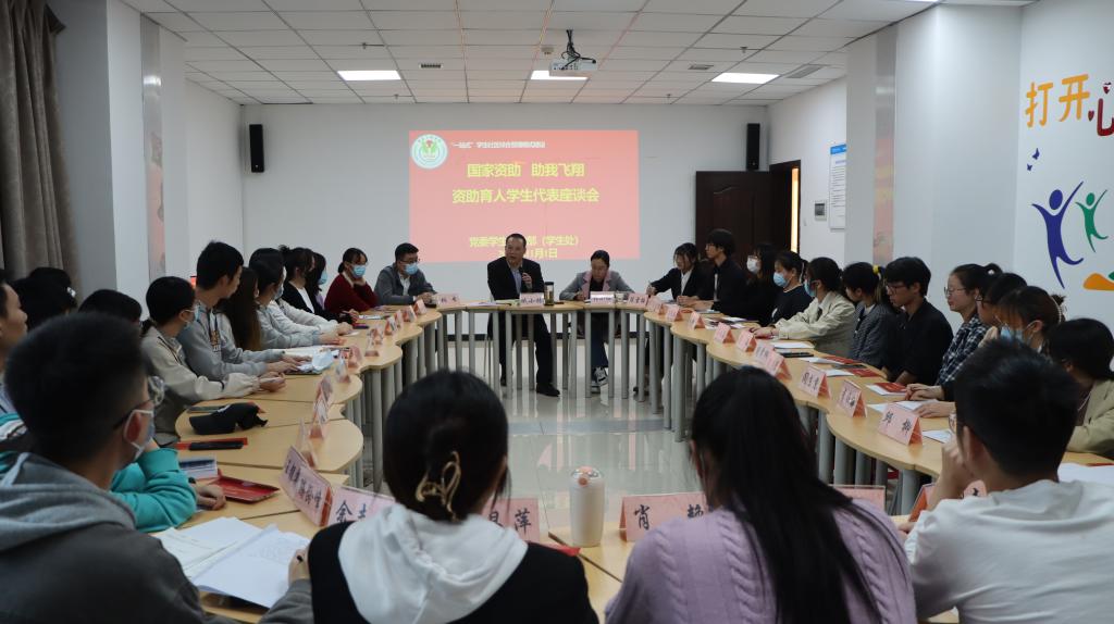 11月1日,党委学生工作部在科技楼404会议室召开秋季学期资助育人学生代表座谈会。党委常委、副校长臧小林应邀出席并讲话,党委学生工作部学生资助管理中心全体人员和各二级学院学生代表参会。