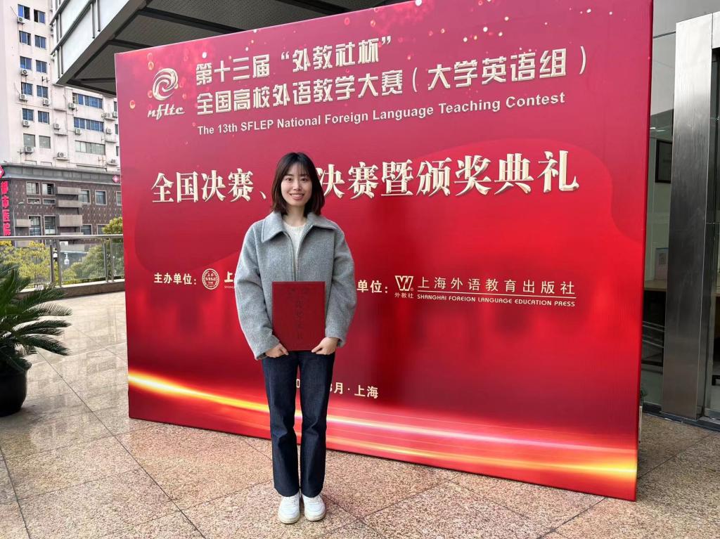 近日,第十三届“外教社杯”全国高校外语教师教学大赛(大学英语组)全国决赛、总决赛在上海举办。beat365官网外国语学院青年教师张力丹代表重庆市参加此次比赛,荣获大赛视听说课组三等奖。