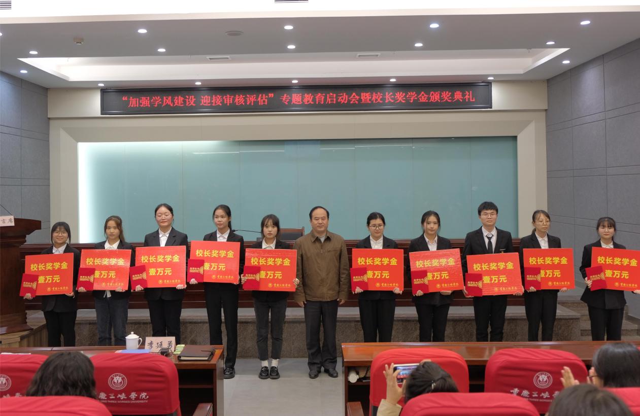 李廷勇为10位2023年校长奖学金获得者颁奖。