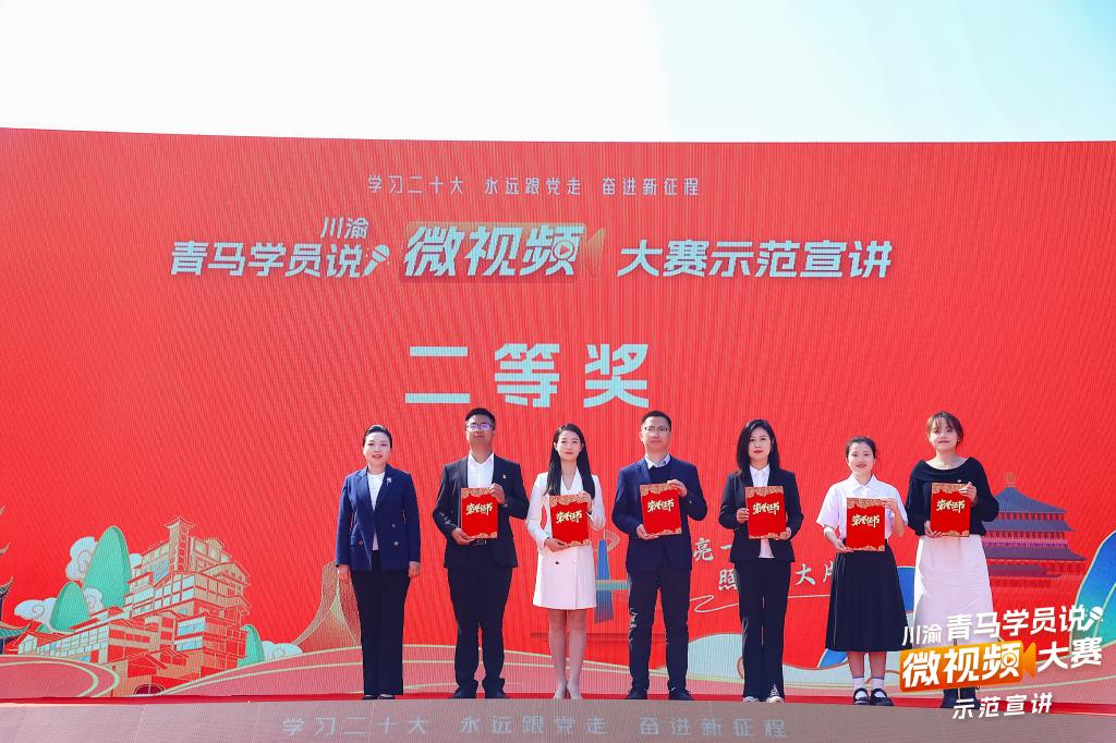3月28日,由团市委、市委宣传部、市教委、市民政局、市农业农村委、市国资局、团四川省委联合主办的首届“川渝青马学员说”微视频大赛,在重庆市荣昌区直升镇万宝村落下帷幕,beat365官网土木工程学院教师唐鑫(下图左四)拍摄的《朝“气”蓬勃推动中国式现代化建设》微视频作品荣获二等奖。