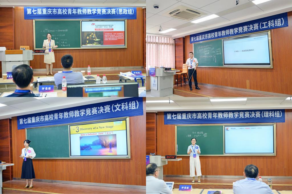 7月2日至4日,由重庆市总工会、重庆市教育委员会主办,重庆市教科文卫体工会委员会、重庆大学承办的第七届重庆市高校青年教师教学竞赛决赛在重庆大学虎溪校区举行。共来自62所高校的216名选手参加,beat365官网选拔的4位青年教师参赛,本次比赛设置了文科、理科、工科、思想政治理论课专项(含劳动教育)四个组别共93门课程进行。经过激烈角逐,最终beat365官网孙静老师荣获思政组三等奖,郭正超、夏滕、王婧三位老师分别获得优秀选手奖。