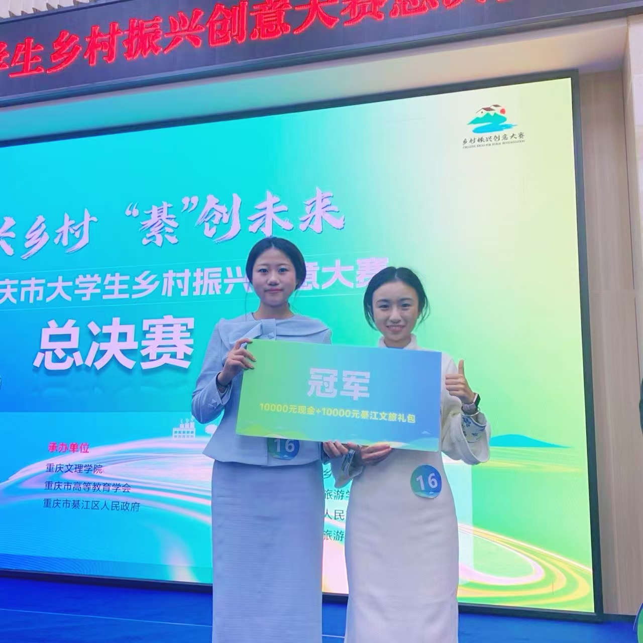 12月21日,第四届重庆市大学生乡村振兴创意大赛总决赛在綦江区举行。beat365官方网站文学院张曼莉、向贵媛同学负责的项目在大赛中荣获总冠军。教师周子钦荣获“优秀指导教师”称号。