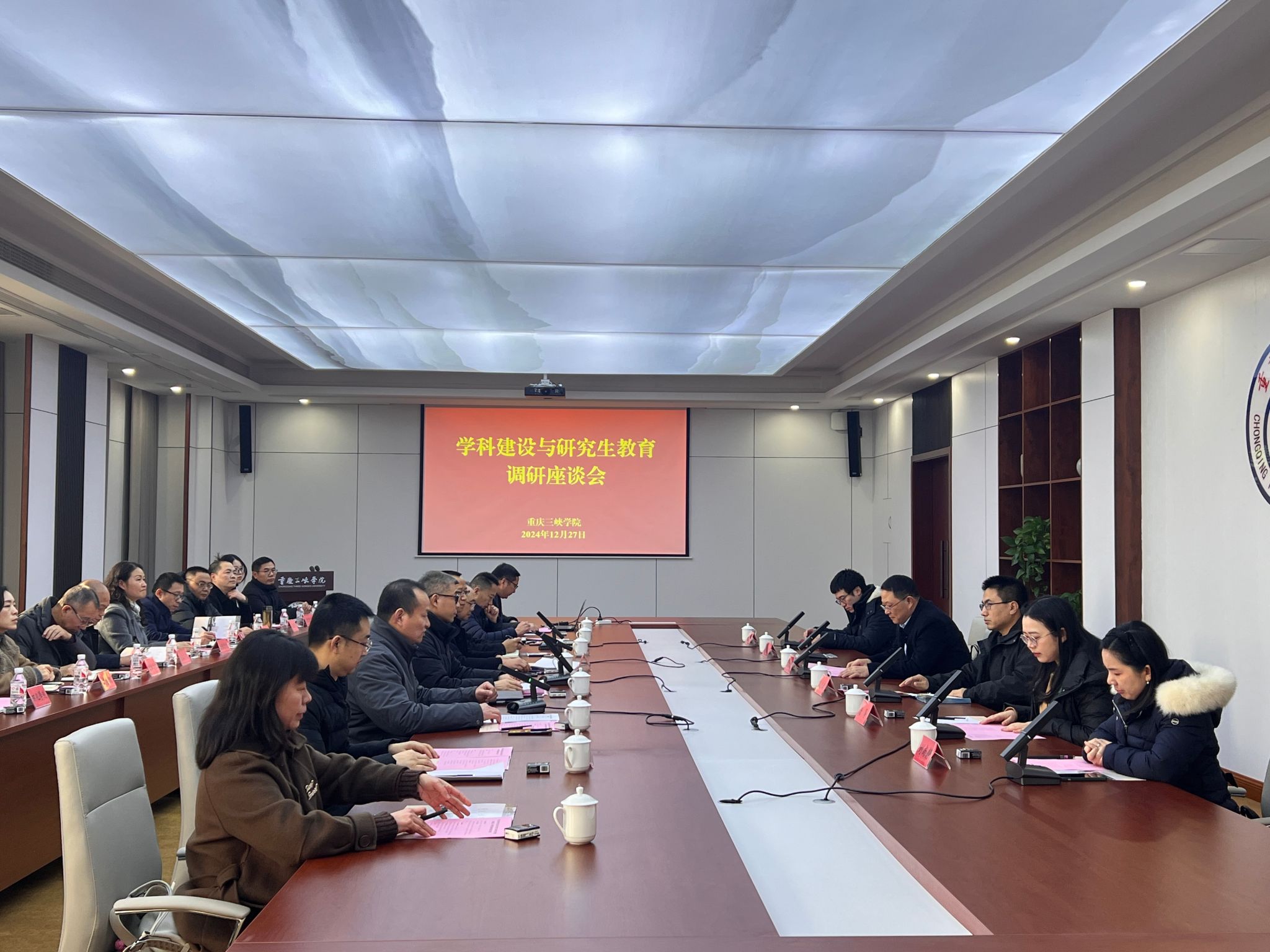 12月27日,市教委研究生处处长张永祥一行来校调研学科建设与研究生教育工作。学校校长李敬,副校长郭作飞、聂祥飞,人事处、发展规划处、科研处、研究生处负责人,博士学位立项建设授权点、市级重点学科(学科群)负责人、各研究生培养学院负责人参加会议。会议由副校长聂祥飞主持。