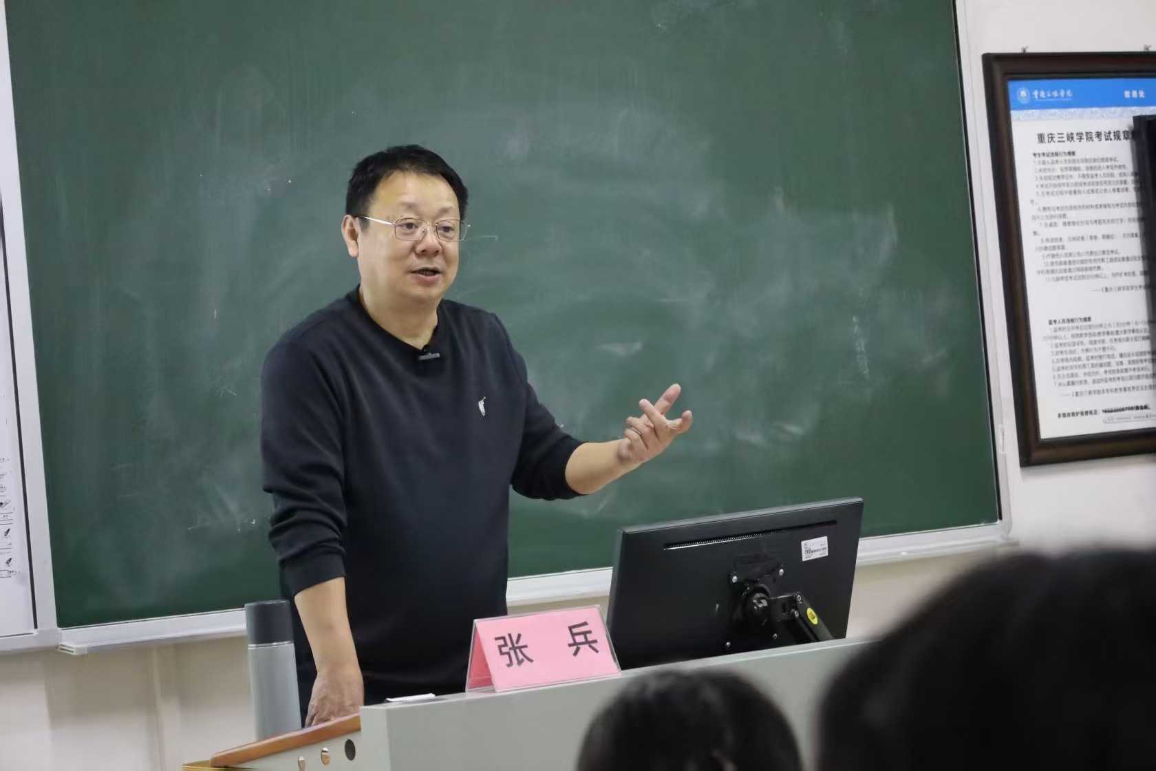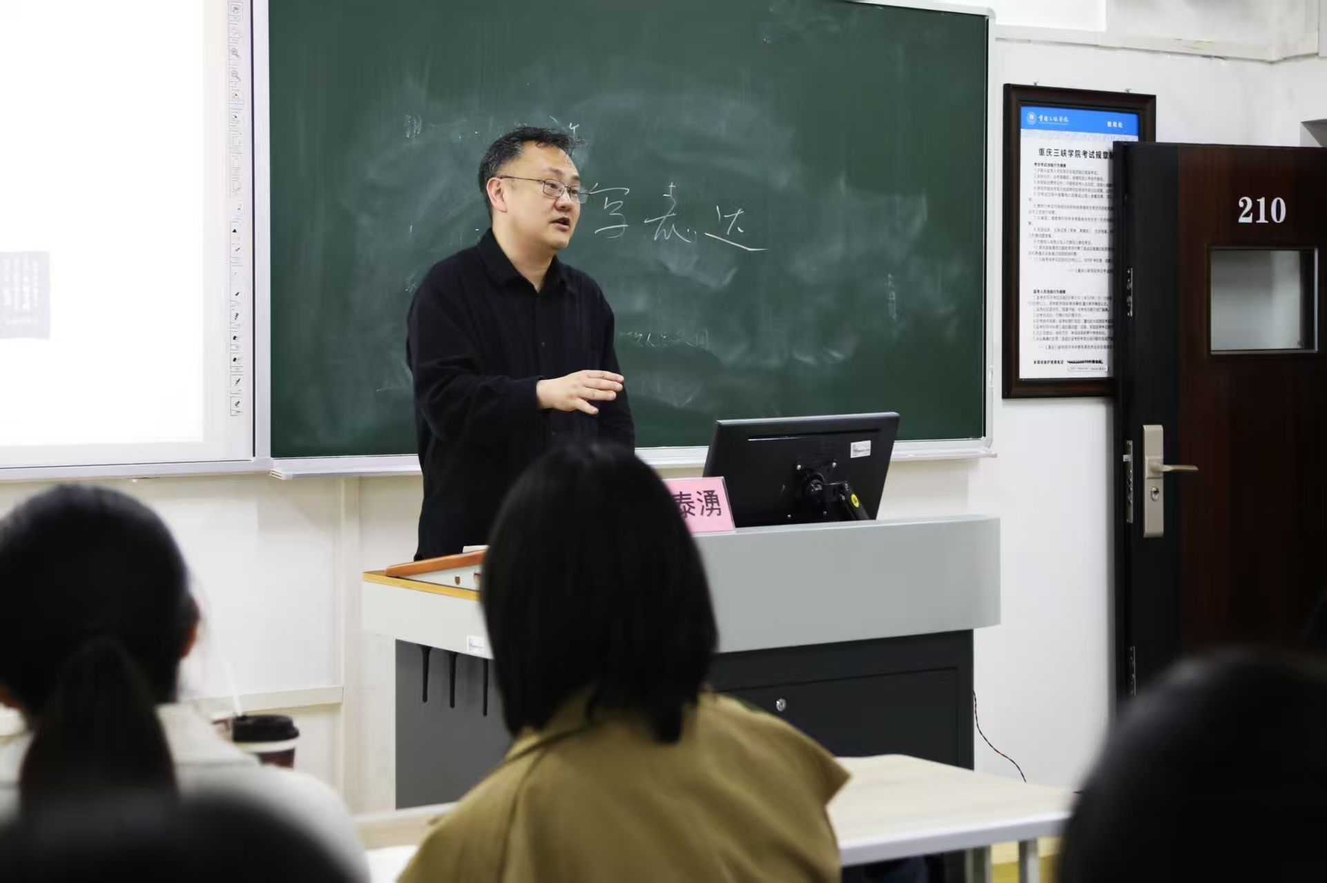 当天,重庆市作协副主席、重庆文学院院长张兵,上游新闻文化频道负责人陈泰湧联袂开讲,二人分别以“数字化时代的类型小说”和“从医学到文学”为主题,与文学院、传媒学院部分师生进行了充满诗意与思辨的文学交流。