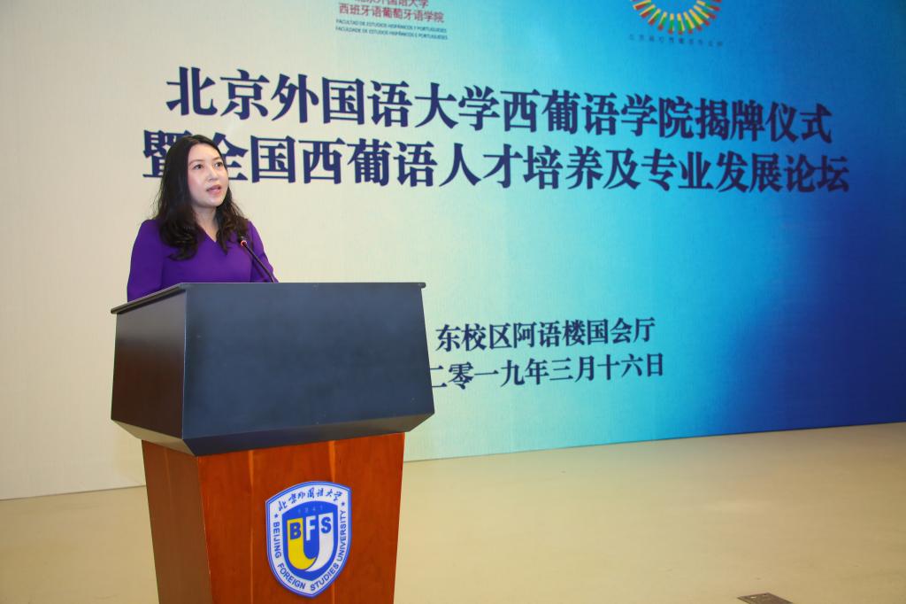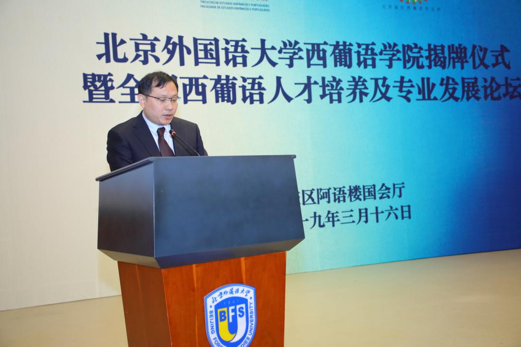 北京外国语大学副校长闫国华在致辞中表示,pp电子游戏平台官网的成立是北外教育史上的大事,学院应肩负起立德树人的神圣使命,为国内西葡语教育的发展发挥更大的引领和示范作用。闫国华副校长还对pp电子游戏平台官网的发展提出了几点希望:第一,坚持服务国家战略发展方向,精心谋划发展大局,实现规模、质量、效益的协调发展;第二,以不断创新的时代精神进一步强化教育教学改革,创新人才培养模式,打破专业壁垒,继续扩大国际交流与合作,培养出一批具有家国情怀、国际视野的复合型、复语型、高层次人才;第三,整合优质资源,坚持走内涵提升与外延发展并重的办学之路,做到大楼、大师、大器三者相得益彰。