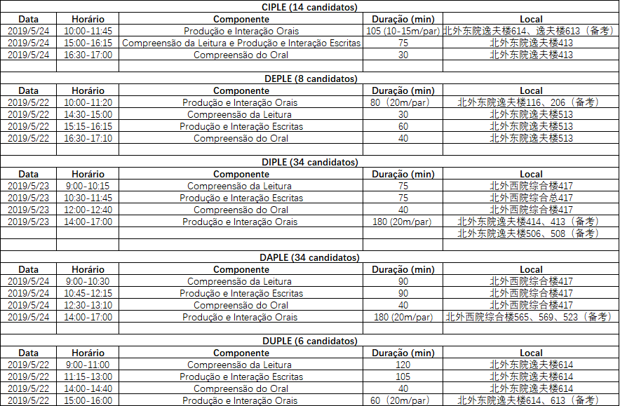 关于2019年5月CAPLE考试的通知